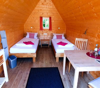 Neben Ihrer Hütte mit den zwei gemütlichen Betten, für die bei Bedarf auch Bettzeug gemietet werden kann, können selbstverständlich alle Einrichtungen unseres Campingplatzes wie Sanitäranlagen, Kochstelle, Badeweiher, Aufenthaltsraum etc. mitbenutzt werden.